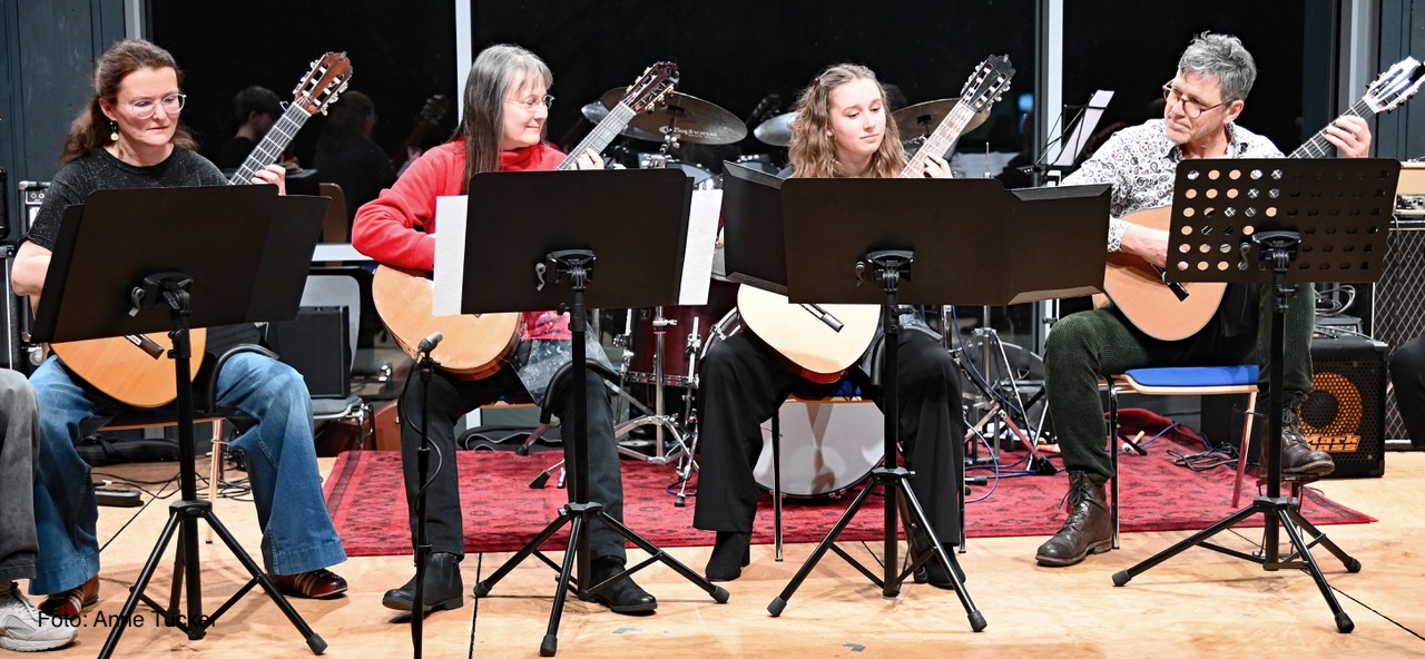Formationen neue Stücke auszuprobieren und aufzuführen. Traditionell beginnen die Teilnehmer*innen der Gitarre das Konzert.