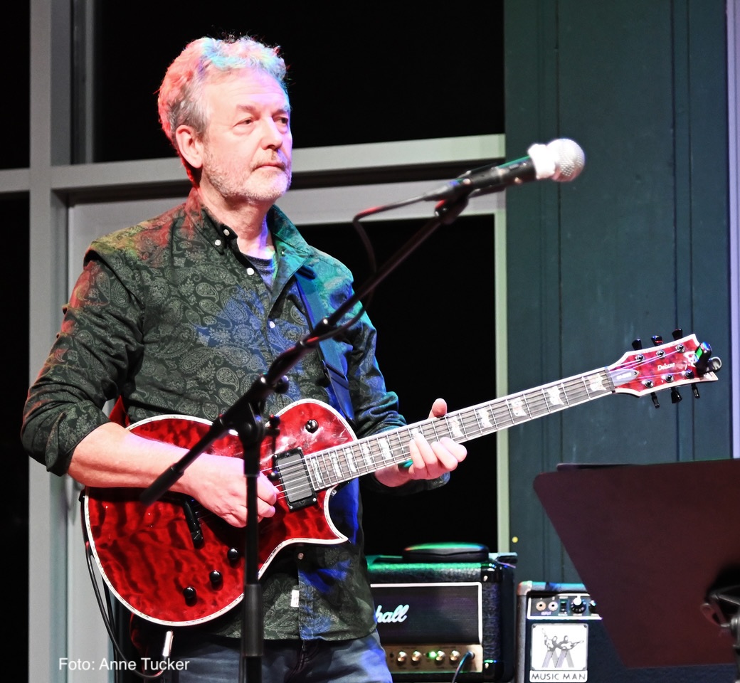 Rolf Fahlenbock führt durch den Abend der E-Gitarren