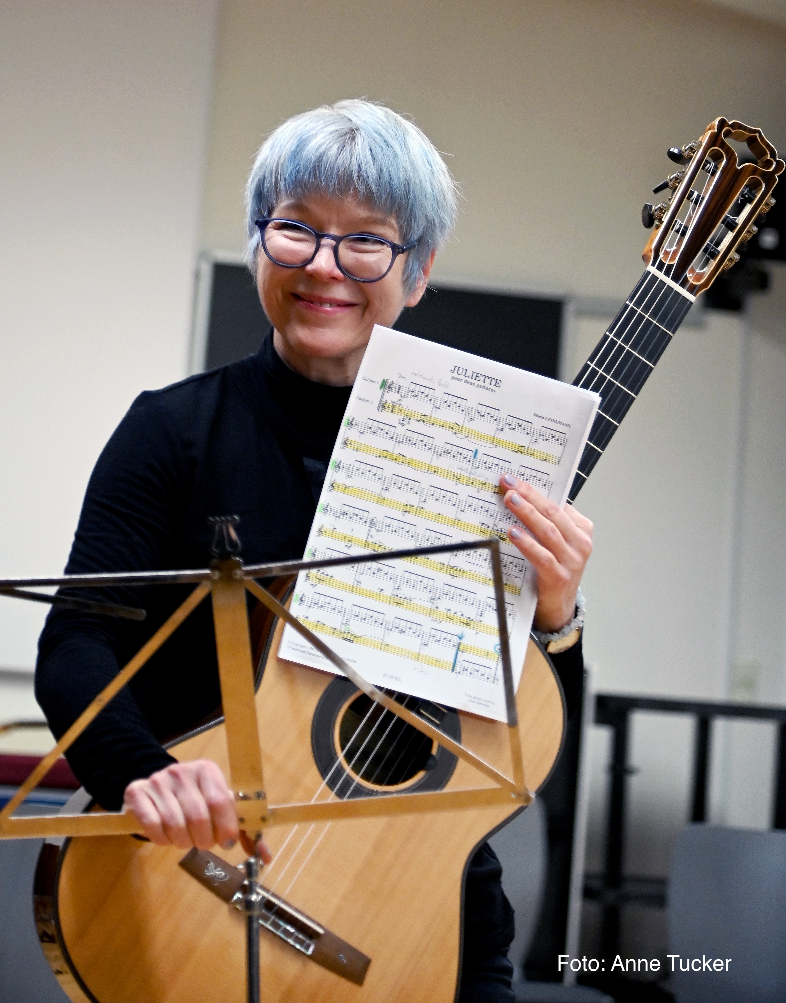 Eine fantastische Künstlerin: Liying Zhu bei der Ansage ihres Programms zur Eröffnung Gitarre Night