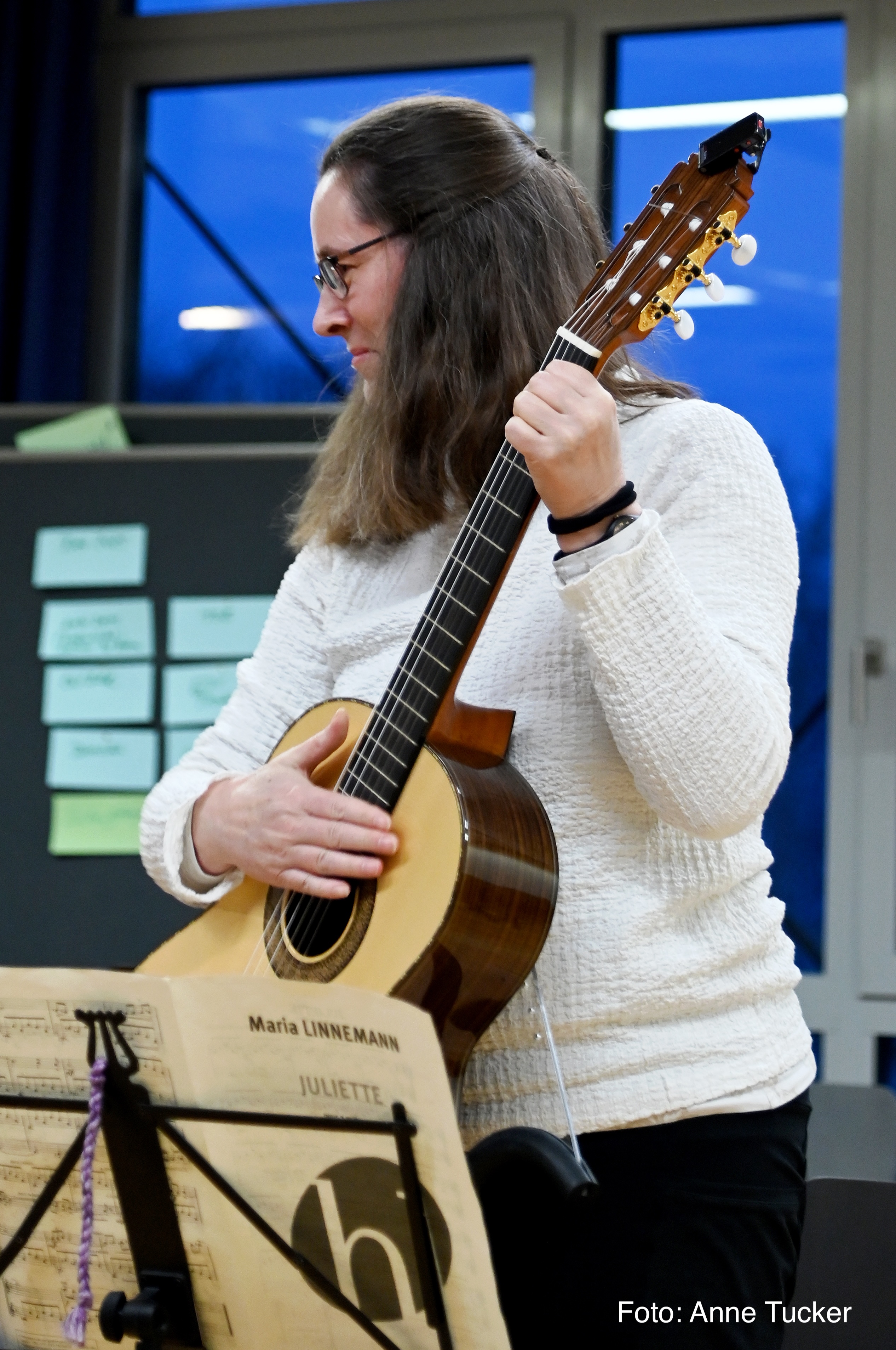 Die Guitar-Night, die allein durch ihre Dauer immer einen Höhepunkte des Festivals bildet, lockte trotz des heftigen Schneeeinbruchs doch noch zahlreiche Zuhörer*innen an. Sie erhielten auch in diesem Jahr wieder einen Beweis der großen künstlerischen Qualitäten der Interpreten*innen und des schier unerschöpflichen und reichen Repertoires der Gitarre. Liying Zhu verzauberte ein weiteres Mal mit ihrer Virtuosität, ihrer klanglichen Wärme und ihren farbigen und fantasievollen Interpretationen. Umso bemerkenswerter, als sie sehr kurzfristig für Samrat Majumder „einspringen“ musste, dem in England 2 Tage vor seiner Abreise nach Deutschland sein Reisepass abhanden gekommen war.