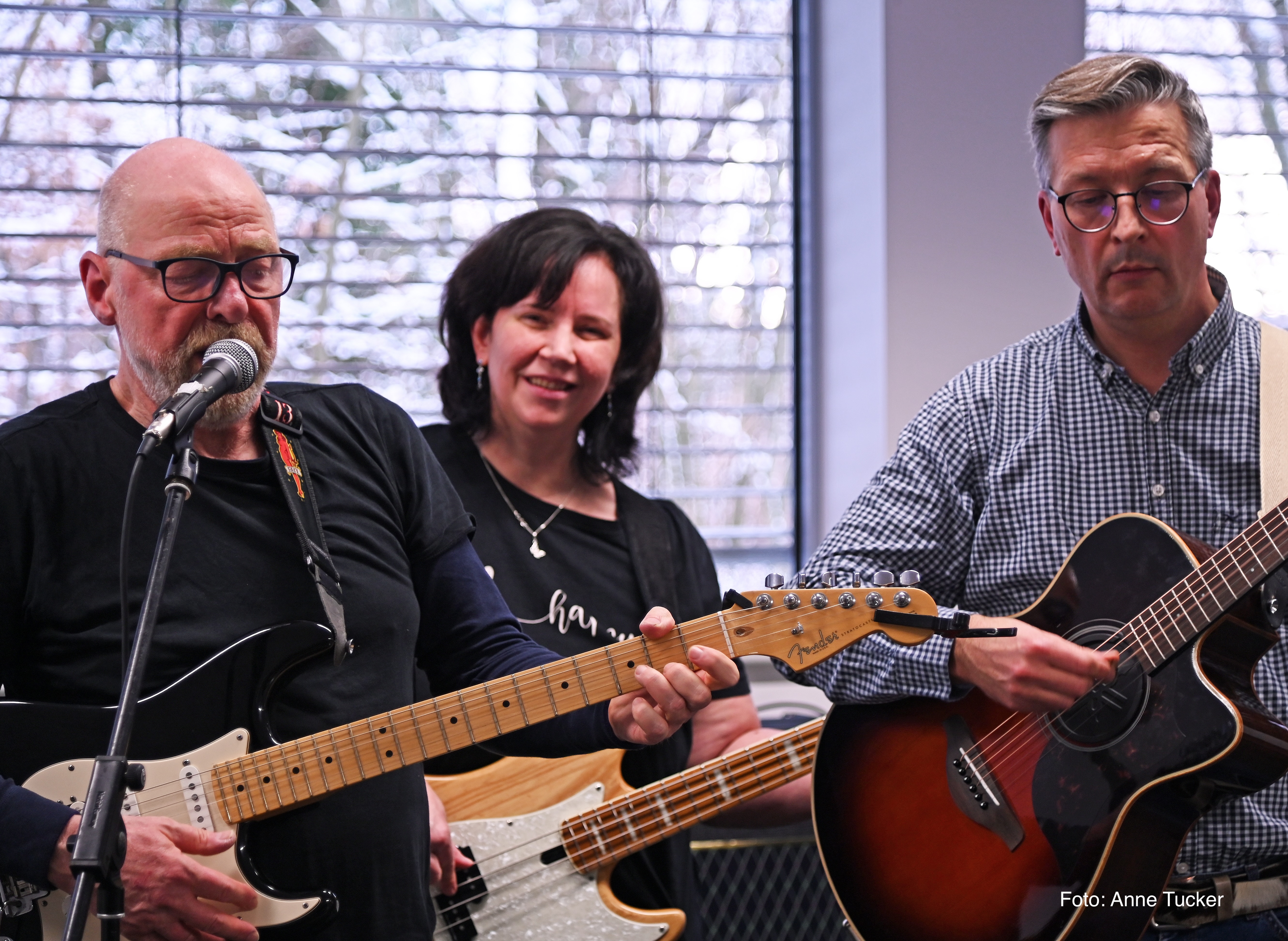 Das Werner Neumann Trio nach ihrem beeindruckenden Konzert (von links Werner Neumann (g), Ralf Kessler (dr) Oliver Lutz (b)